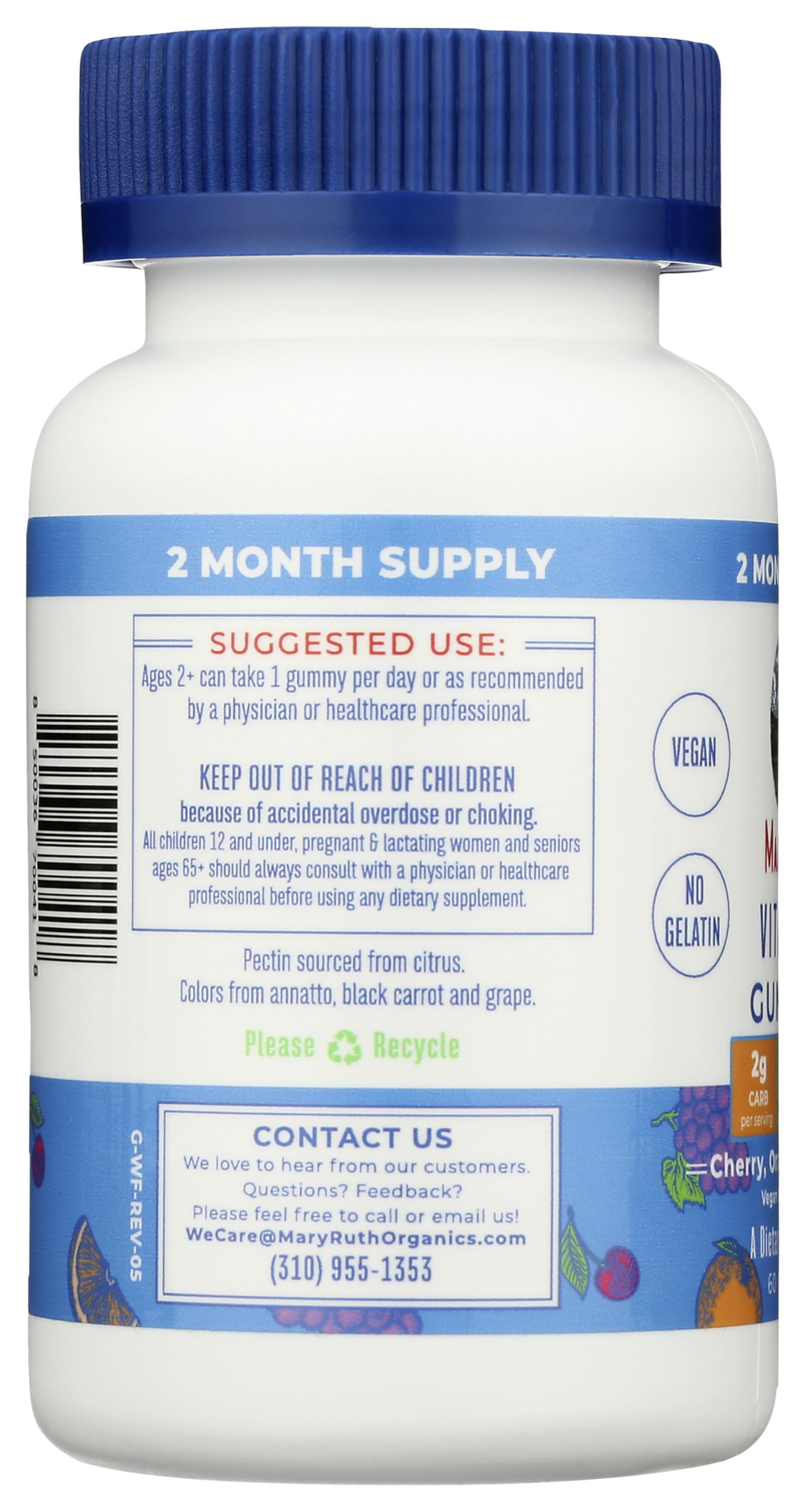 - For Most Lifestyles: MaryRuth's Vitamin C Gummies are Non-GMO | No Gelatin | Pectin Based | Vegan | Made in a GMP (Good Manufacturing Practice) Facility. Dairy Free | Nut Free | Gluten & Wheat Free | Soy Free | Nightshade Free | Made with Organic Cane Sugar.